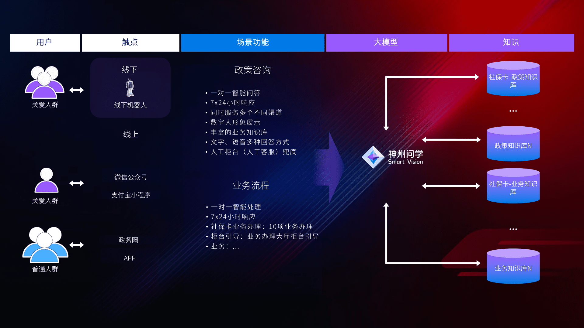 • 线上线下全覆盖:线上提供微信公众号、、、支付宝小程序、、政务网、、、app多种渠道,,,与线下机器人形成完整服务体系。。